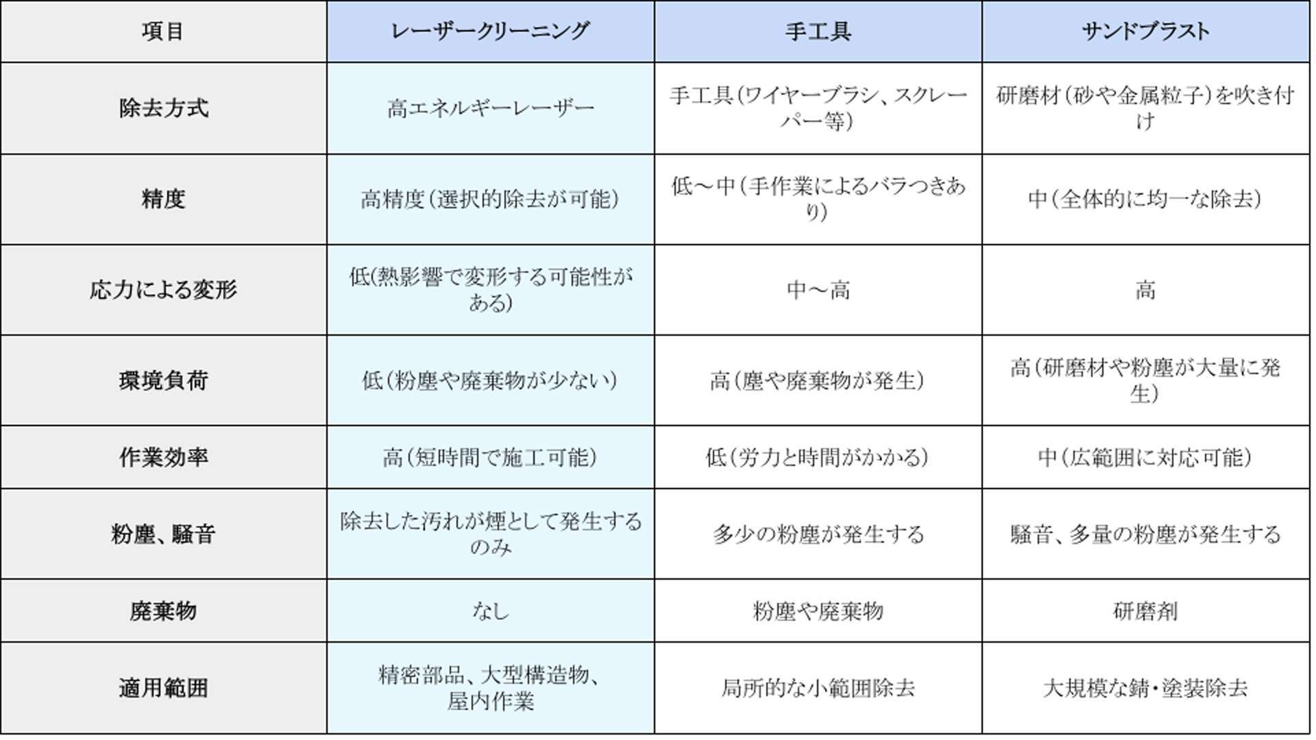 □レーザーブラストクリーニングと従来のケレン・ブラストの比較