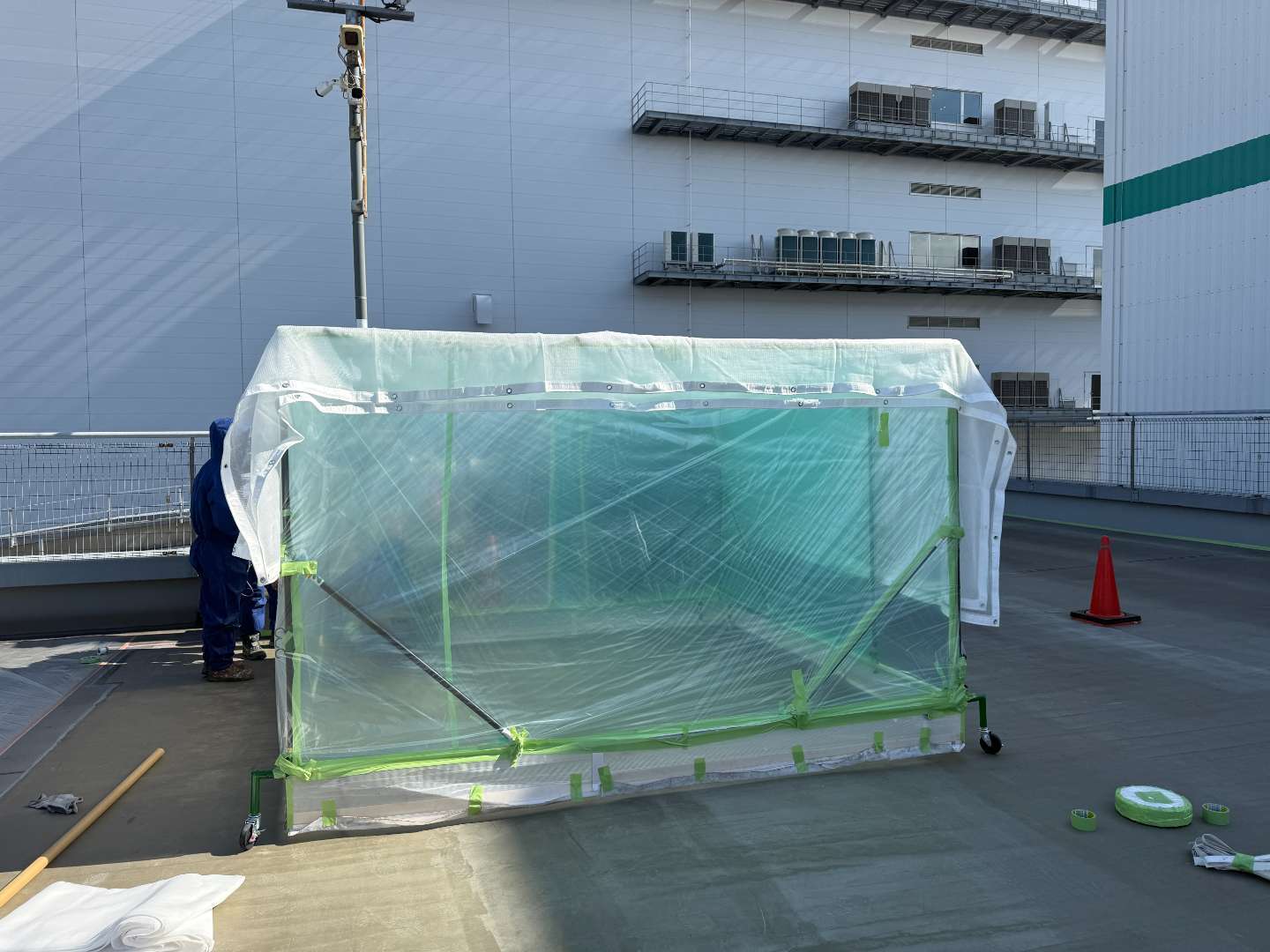 ・屋根付き、または仮設養生により雨を完全に遮断できる場合